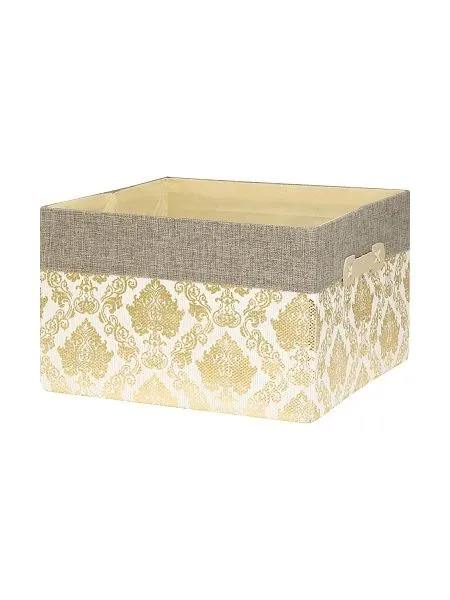 Кофр складной для хранения "Перо павлина" коричневый 31*31*31 см квадрат, с ручкой (стенки и дно плотные), состав - ткань