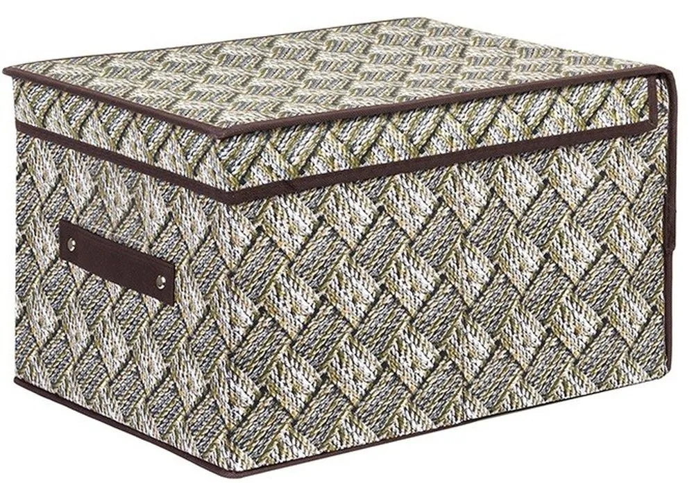 Кофр складной для хранения "Перо павлина" коричневый 50*40*30 см. с 2 ручками и прозрачным окном (стенки и дно плотные), состав - ткань