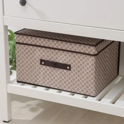 Кофр складной для хранения "Плетенка" серо - бежевый, 18*33*15 см., с ручкой (стенки и дно плотные), с крышкой, с карманом для заметок, состав - комби