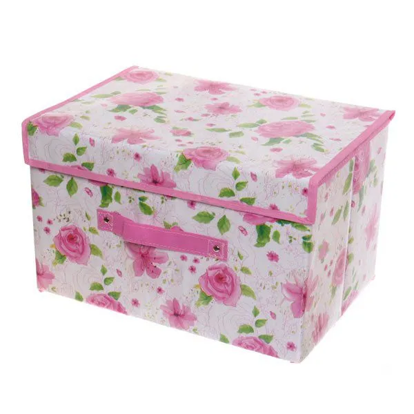 Кофр складной для хранения "Слоники" 28*28*28 см., с 2 ручками (стенки и дно плотные), квадратный, состав - комбинированные материалы