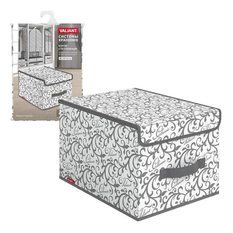 VAL CG-BOX-LM Короб стеллажный с крышкой, большой, 30*40*25 см, CLASSIC GREY