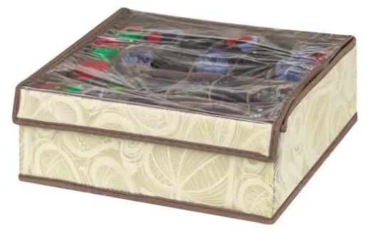 Кофр для нижнего белья и носков "Бежевые сердца", 32*32*12 см, 24 секции, с прозрачной крышкой на липучке, состав - высококачественный нетканый матер