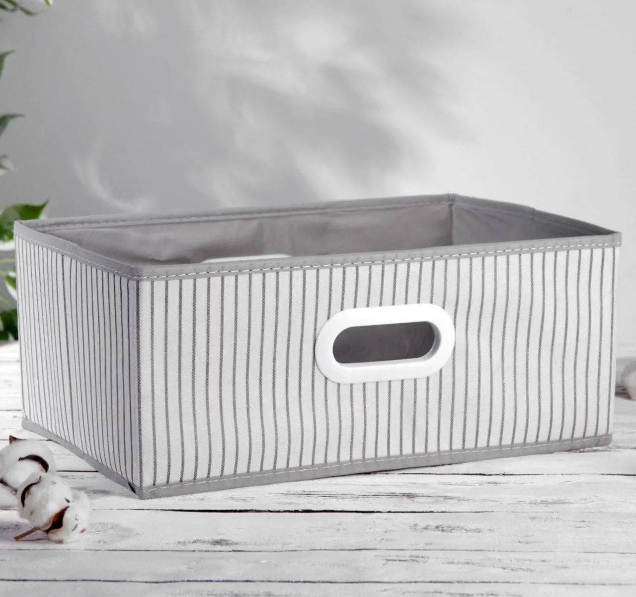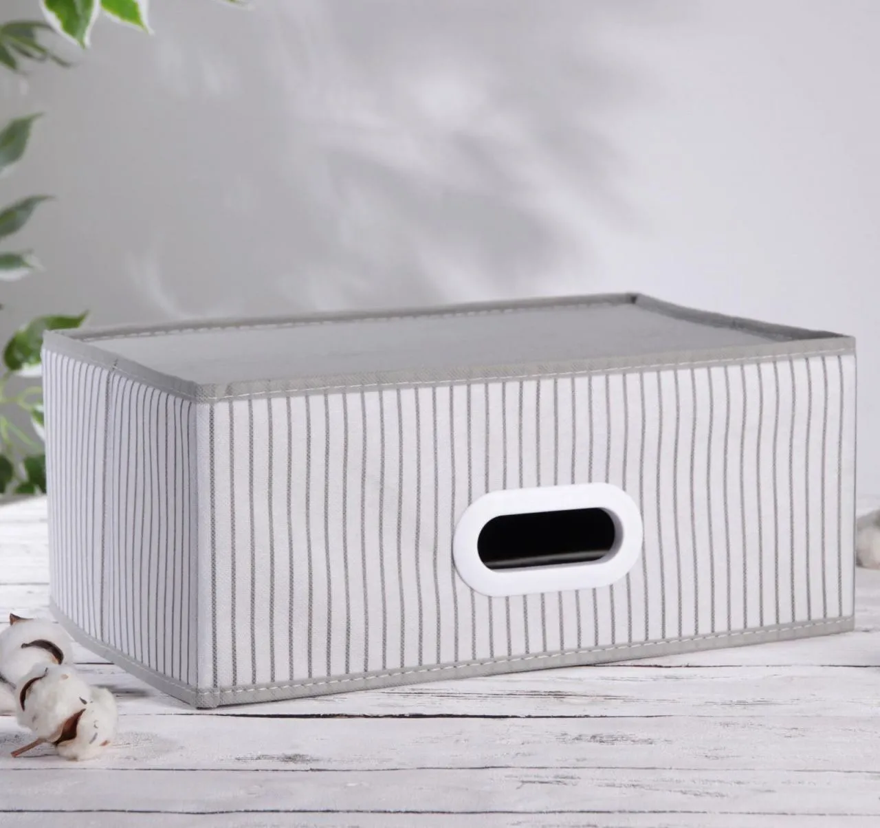 Короб для хранения с ручками, 38х24х16 см, цвет белый в полосочку 5156395
