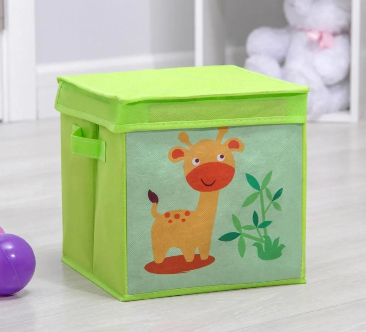 Короб для хранения с крышкой детский 25х25х25 см "Жираф", цвет зеленый 3783583
