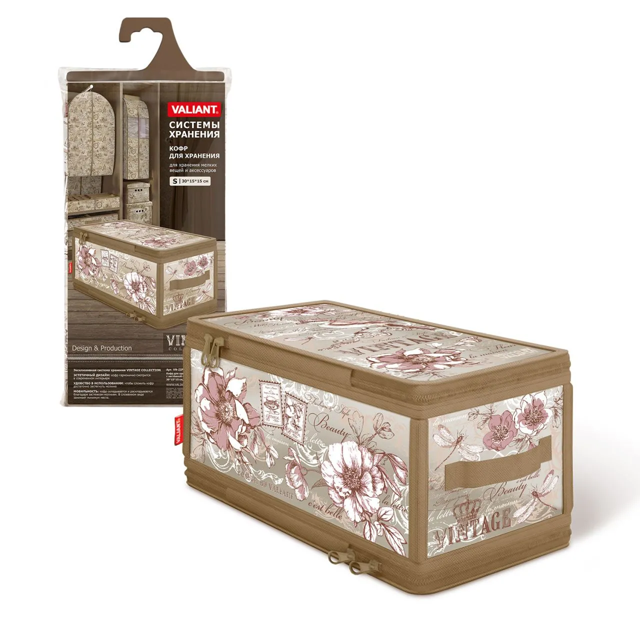 Короб складной для хранения "Цветочный узор на кофе с молоком" 40*30*25 см, с 2 ручками (стенки и дно плотные), состав - высококачественный нетканый м