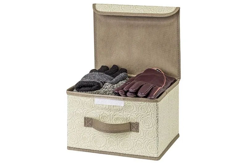 Короб складной для хранения "Розы на бежевом" 26*20*16 см, с ручкой (стенки и дно плотные), крышка на липучке, состав - высококачественный нетканый ма