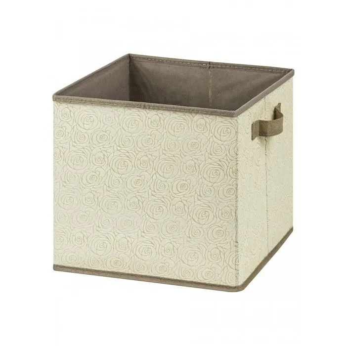 Короб складной для хранения "Розы на бежевом", 31*31*31 см, без крышки, квадрат, с 2 ручками (стенки и дно плотные), состав - высококачественный нетка