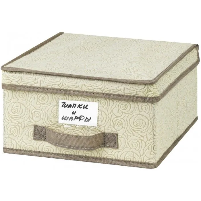 Короб складной для хранения "Розы на бежевом" 30*28*15 см, с карманом и ручкой, состав - высококачественный нетканый материал