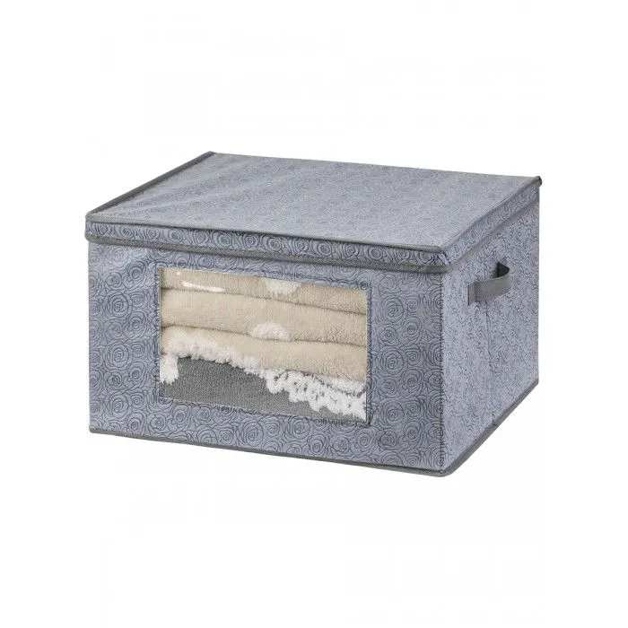 Короб складной для хранения "Розы на сером", 50*40*30 см с 2 ручками и прозрачным окном (стенки и дно плотные), состав - высококачественный нетканый м