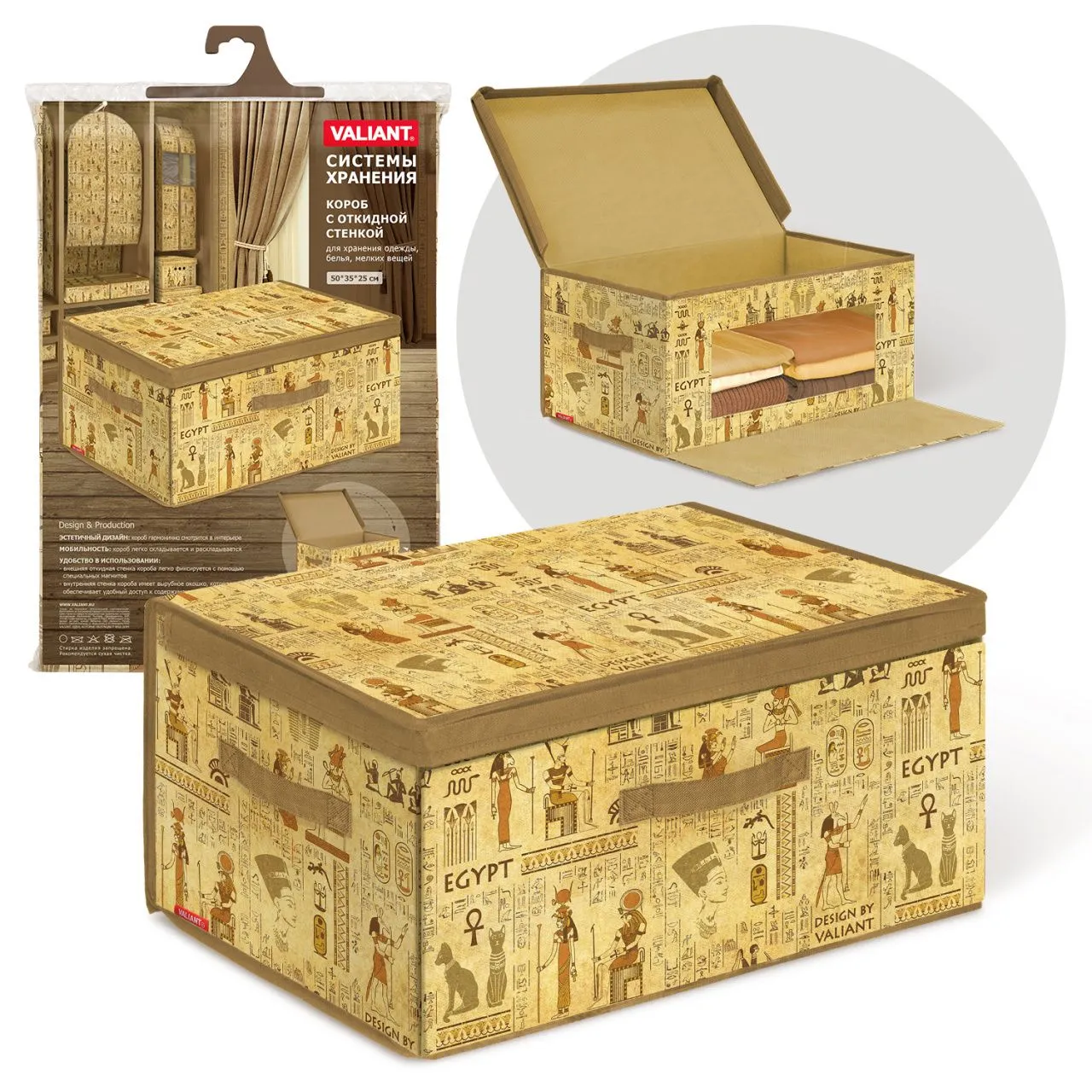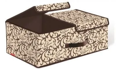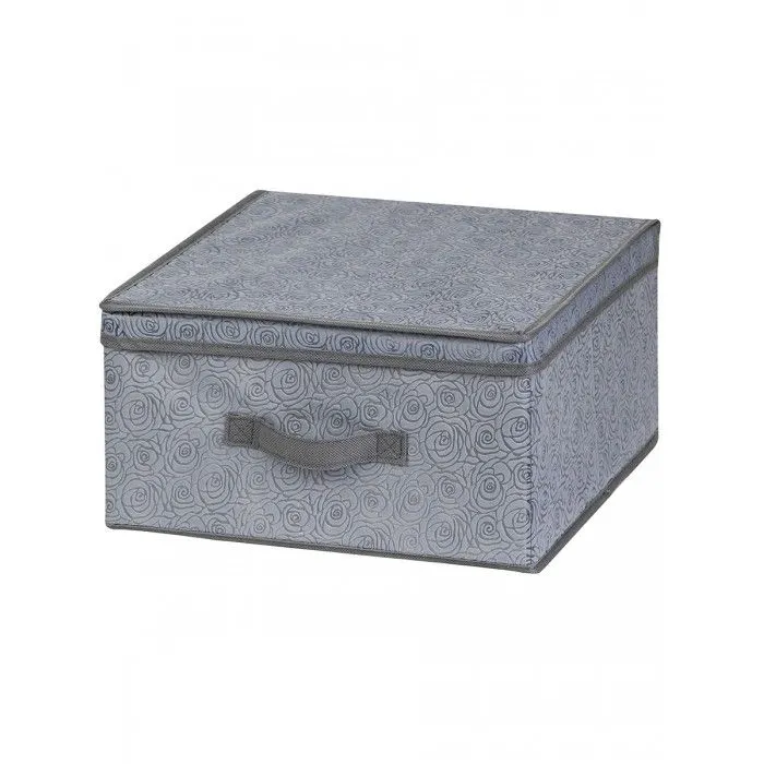 Короб складной для хранения "Розы на сером", 37*37*20 см с ручкой (стенки и дно плотные), состав - высококачественный нетканый материал