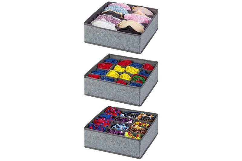 Набор 3 коробов для нижнего белья и носков без крышки "Розы на сером", 32*32*12 см - каждый (6,12,16 отделений), состав - высококачественный нетканый