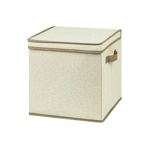 Короб складной для хранения "Цветочный узор на бежевом", 31*31*31 см, без крышки, квадрат, с 2 ручками (стенки и дно плотные), состав - высококачестве