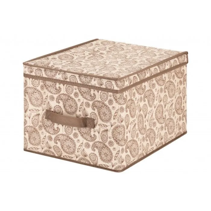 Короб складной для хранения "Пейсли бежево-коричневый", 30*40*25 см, с ручкой (стенки и дно плотные), с крышкой, состав - высококачественный нетканый