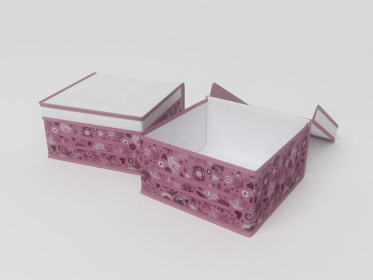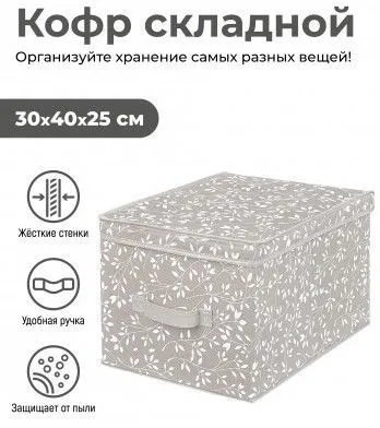 Короб складной для хранения "Белая веточка на сером", 30*40*25 см, с ручкой (стенки и дно плотные), с крышкой, состав - высококачественный нетканый ма