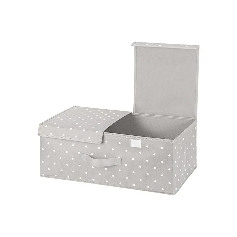 Короб складной для хранения "Серый горошек", 50*30*20 см, с 2-мя крышками на липучках, с ручкой (стенки и дно плотные), состав - высококачественный не