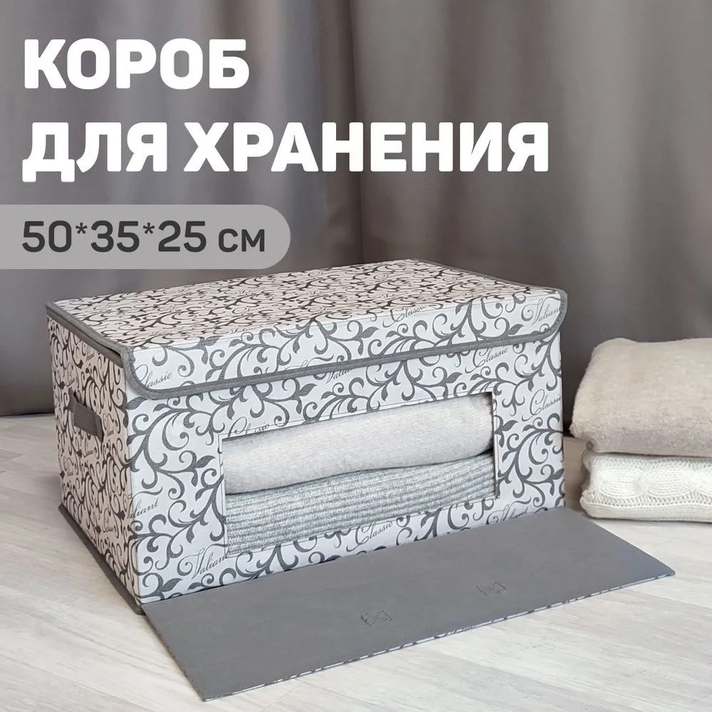 VAL CG-BOX-DDM Короб стеллажный с откидной стенкой, с крышкой, 50*35*25 см, CLASSIC GREY