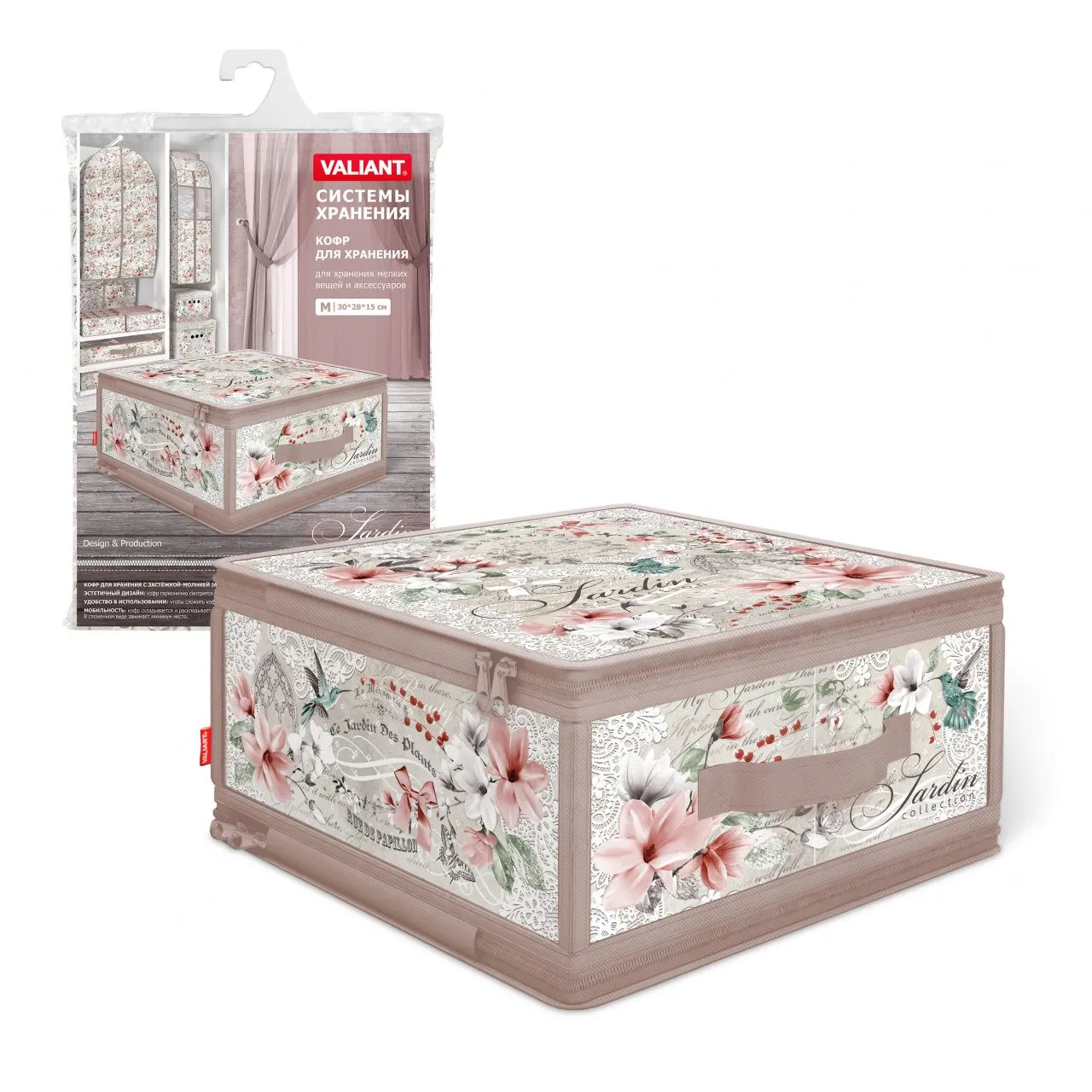 Короб для хранения с двойной крышкой 50х30х25см Вензель коричнево-бежевый 709727