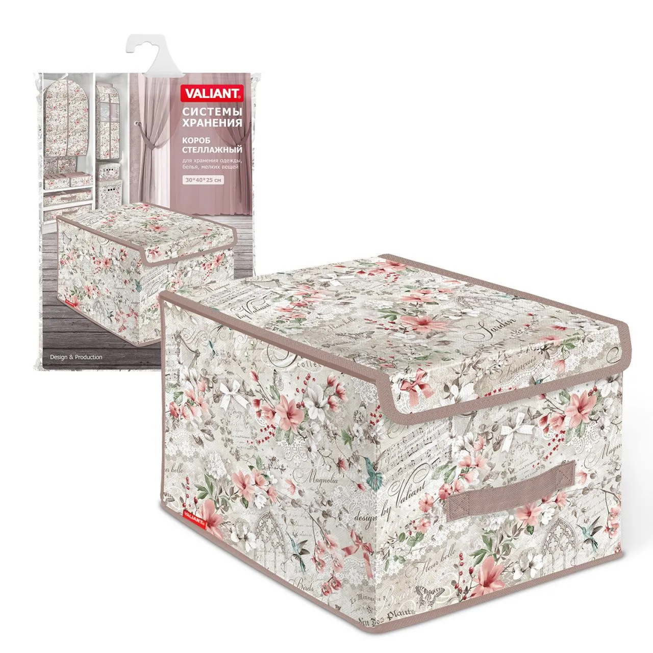 Короб для хранения с двойной крышкой 50х30х25см Птицы 1279671
