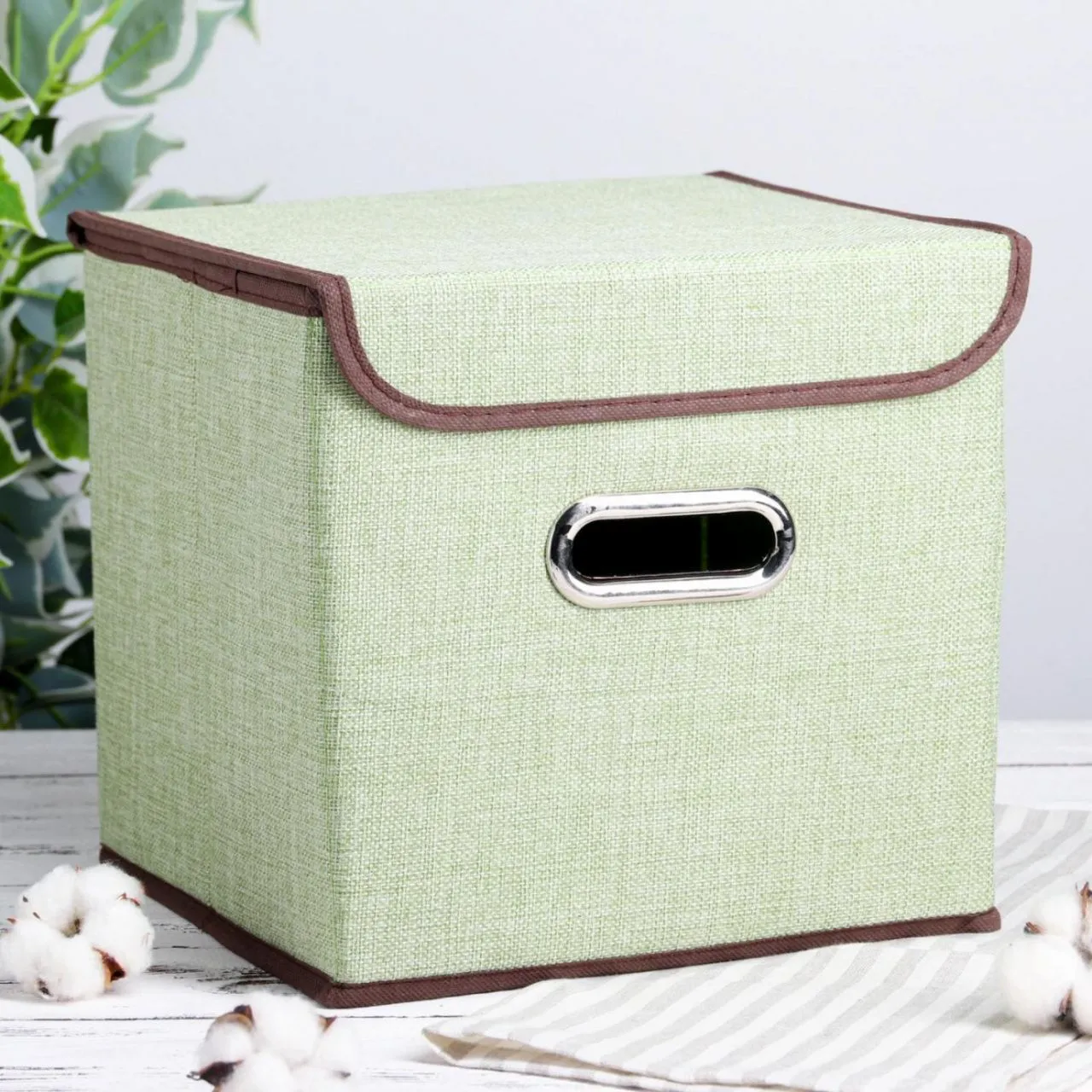 Короб для хранения с крышкой 25х25х25 см "Офис", цвет зелёный 2556830
