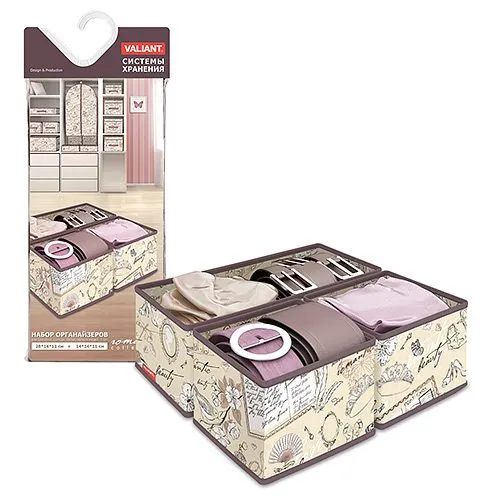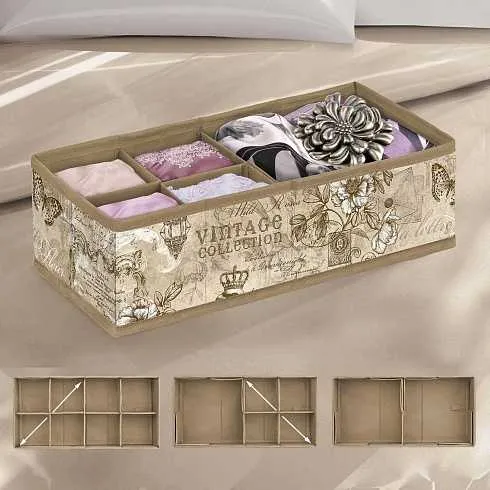 Кофр для нижнего белья и носков "Перо павлина" бежевый 32*32*12 см., 8 секций, состав - ткань