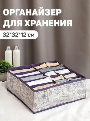Кофр для нижнего белья и носков "Плетенка", 32*32*12 см, 8 секций, с прозрачной крышкой, состав - высококачественный нетканый материал