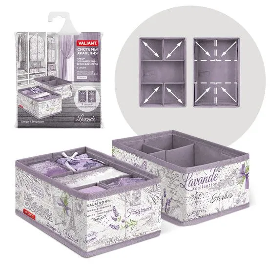 VAL BT-S10P6 Органайзер для белья с крышкой, 10 секций, 6 прозр. карманов, 32*32*12 см, BOTANIC