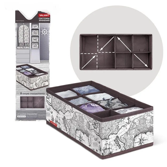 Органайзер для белья 35×30×10 см "Европа", 24 ячейки, цвет серый