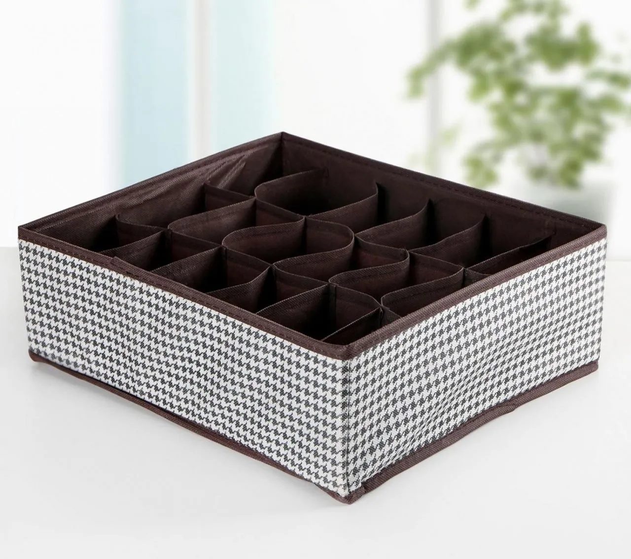 Органайзер для белья 35×30×12 см "Вилли", 18 ячеек, цвет бело-коричневый