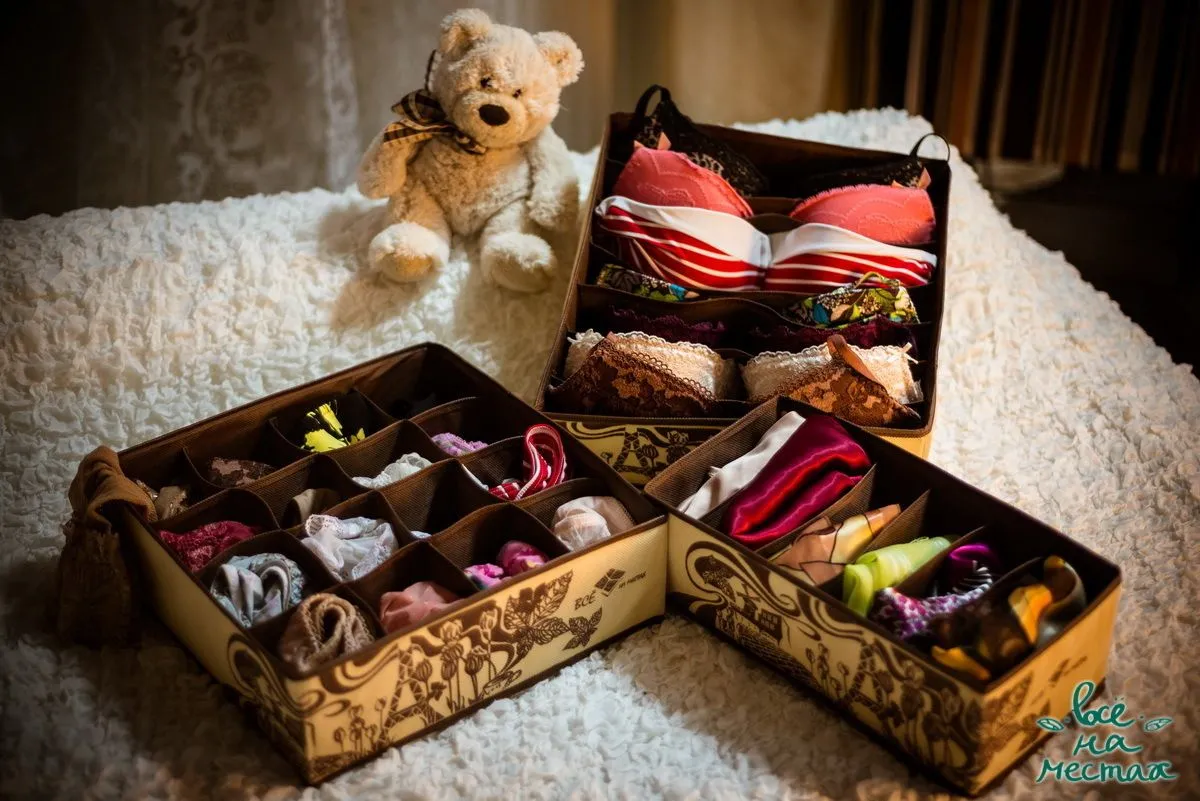Органайзер для белья 6 ячеек 32×32×12 см "Мрамор"