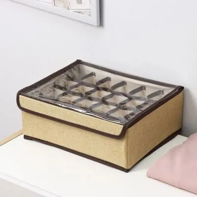 Органайзер для белья с крышкой, 12 отделений, 32х22х10 см, цвет бордовый