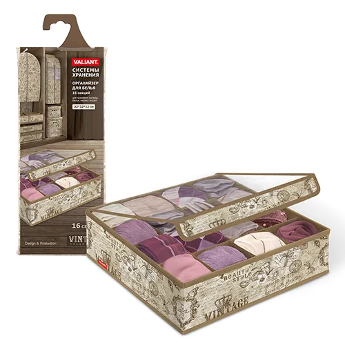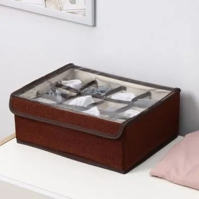 Органайзер для белья с крышкой, 16 ячеек, 30х30х10 см, "Бордо", цвет бордовый 709815