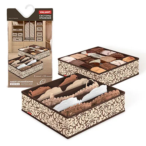 Органайзер для белья, 16 ячеек, 27х25х10 см, ""Шоколатье", цвет коричнево-бежевый