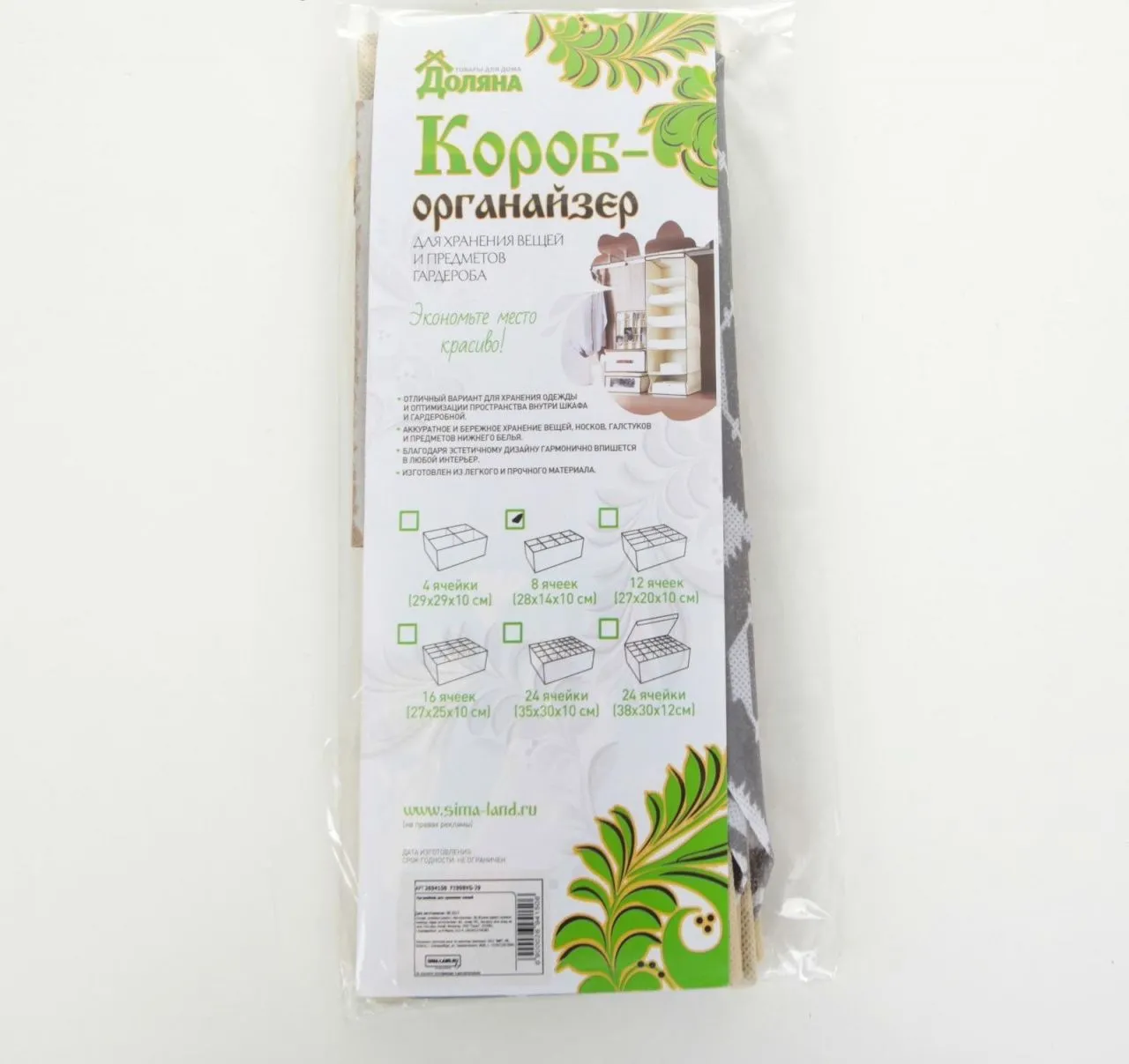 Органайзер для белья, 8 ячеек, 28х14х10 см "Ромбы", серый 2694150