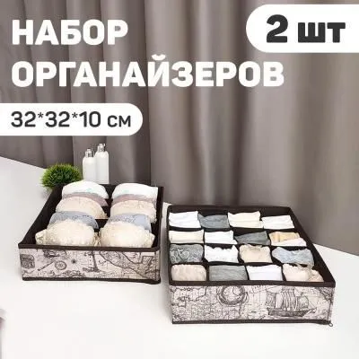 Органайзер для белья, 8 ячеек, 28х14х10 см, коричнево - зелёный 1839463