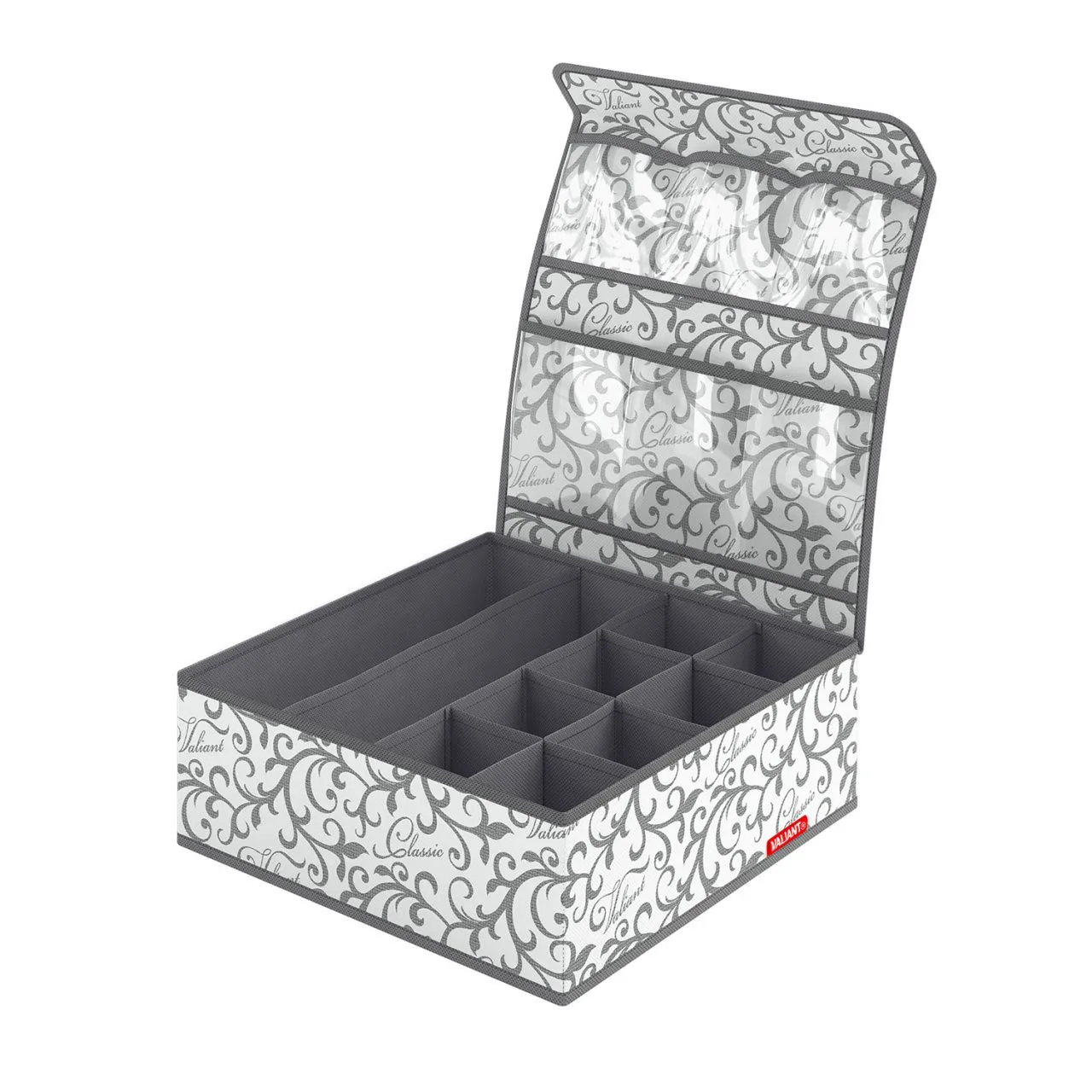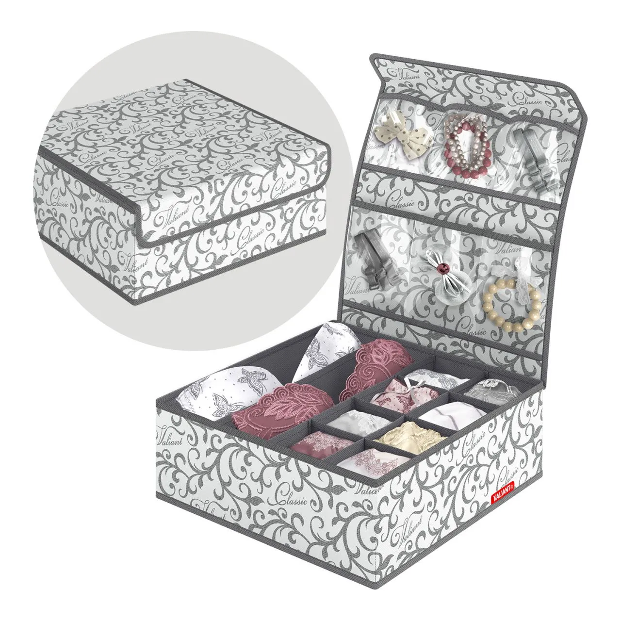 VAL VG-S10P6 Органайзер для белья с функциональной крышкой, 10 секций, 6 прозр. карманов, 32*32*12 см, VINTAGE GREY