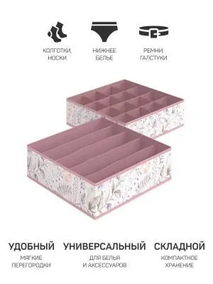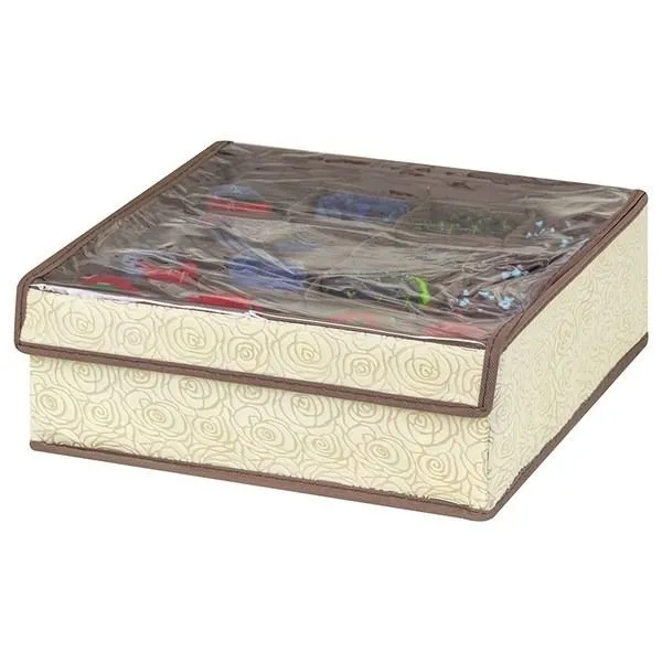 Кофр для нижнего белья и носков "Розы на бежевом" 32*32*12 см, 16 секций, с прозрачной крышкой, состав - высококачественный нетканый материал