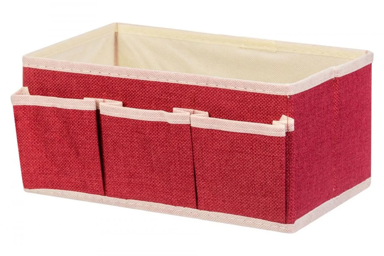 Органайзер для косметики/мелочей "Красный с бежевым кантиком" 25*15*12 см, с 3 карманами, лен