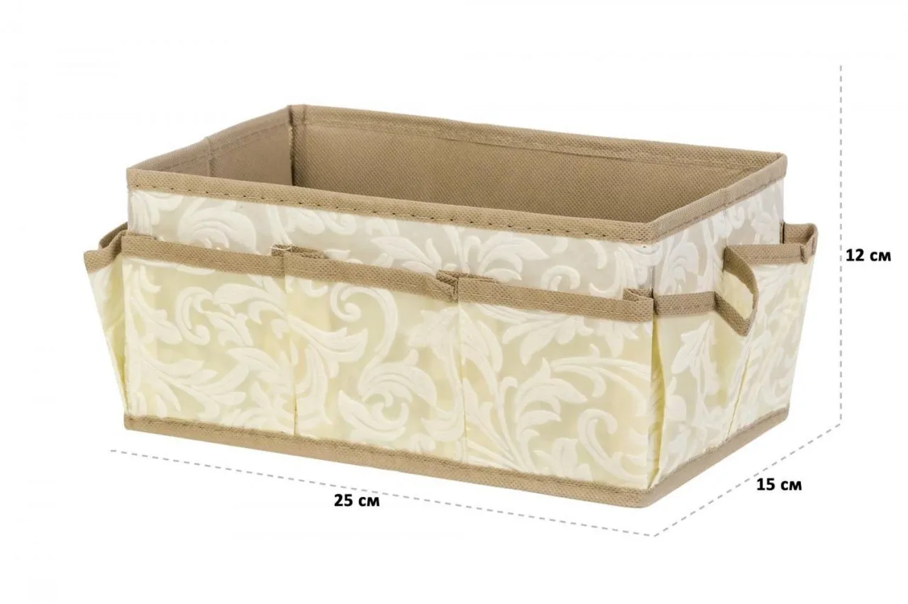 Органайзер для косметики/мелочей "Королевский узор на бежевом" 25*15*12 см, с 7 карманами, состав - высококачественный нетканый материал