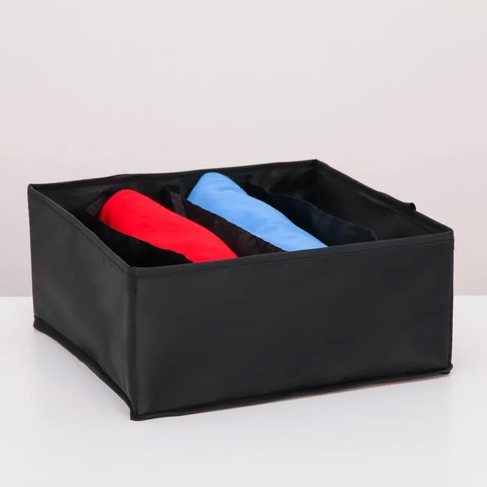 Органайзер для белья 4 ячейки, 28х14х13 см "Аморет" оксфорд, цвет черный 4538885