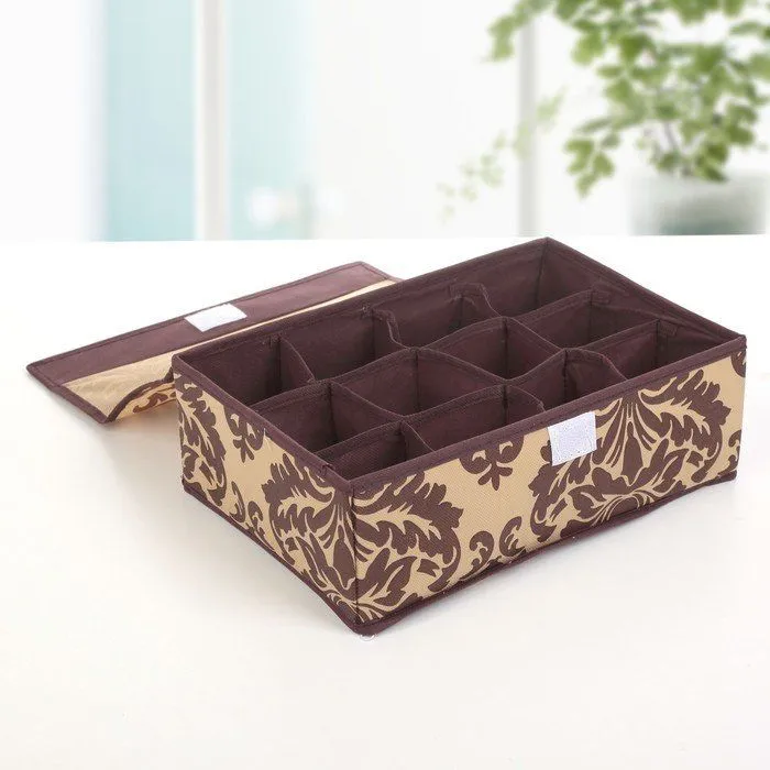 Органайзер для белья с крышкой 12 ячеек 30х20х10 см "Вензель" коричнево-бежевый 709817
