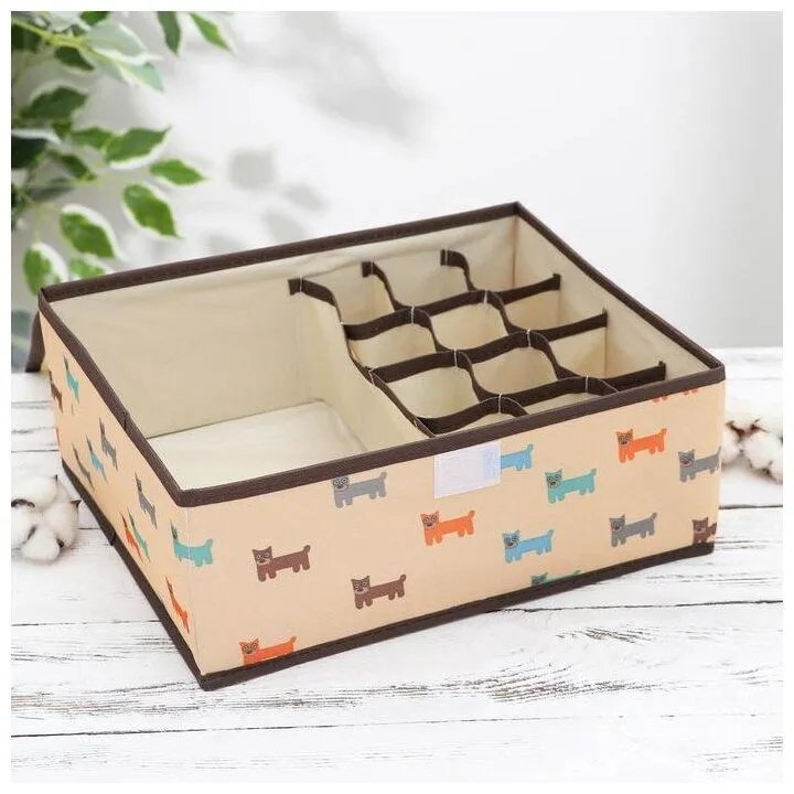 Органайзер для белья с крышкой 13 ячеек 32,5х24х12 см "Собачки" 5199284
