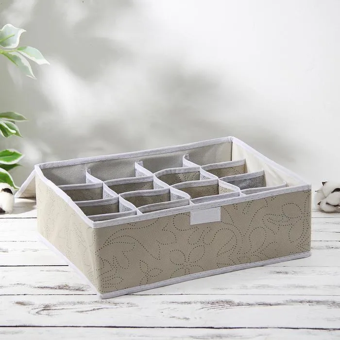 Органайзер для белья с крышкой 16 ячеек 35х27х11 см "Ревьера" цвет бежевый 5442964