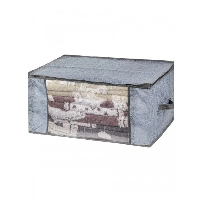Органайзер для хранения одеял и пледов "Розы на сером" 60*45*30 см, на молнии, с прозрачным окошком, с 2 ручками, состав - высококачественный нетканый