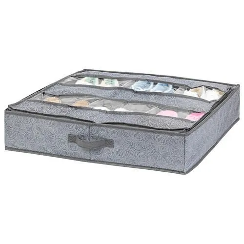Органайзер для обуви "Розы на сером" 60*55*13 см 6 секций на 6 пар обуви, на молнии, с 2 прозрачными окошками на крышке, с ручкой, с жесткими стенками
