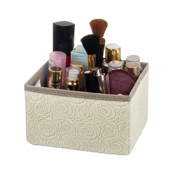 Органайзер для косметики/мелочей "Розы на бежевом" 17,5*15,5*10,5 см, 5 складных секций или 8 внутренних карманов с держателями для туши и карандашей,