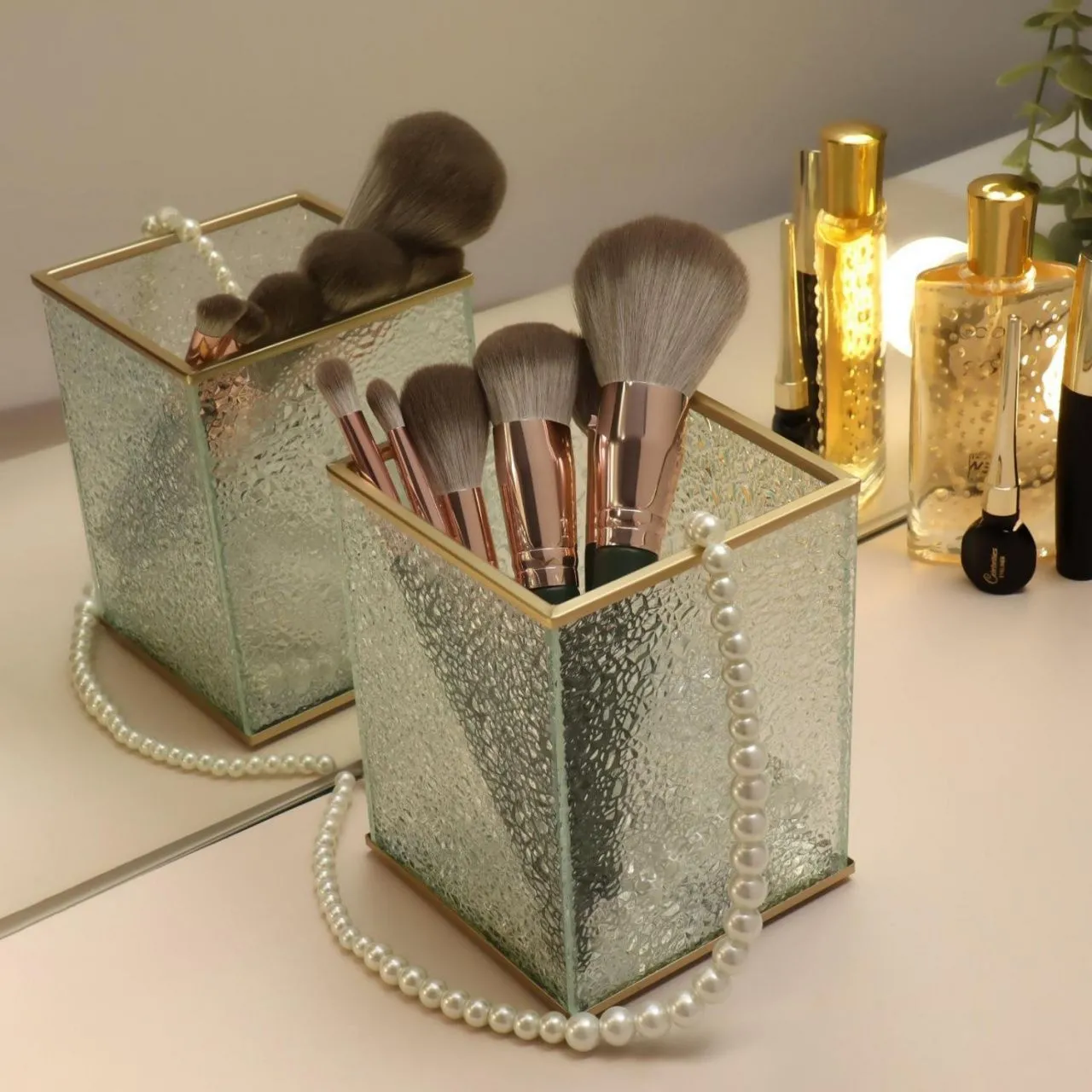 Органайзер д/хранения 1секц 10*10*13см Wet Glass стекло прозрачн/медн к/кор QF 6945230