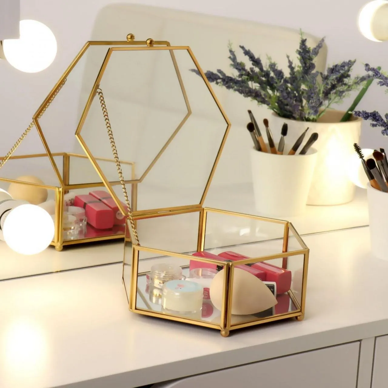Органайзер д/хранения 1секц с крышк 18*16,7*7,1см Белла стекло прозрачн/медн к/кор QF 6945259