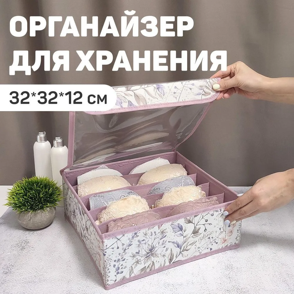 VAL BL-S5 Органайзер для бюстгалтеров с прозрачной крышкой, 5 секций, 32*32*12 см, BOTANIC LILAC