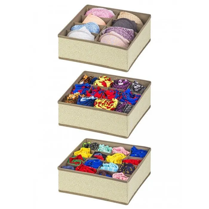 Набор 3 коробов для нижнего белья и носков без крышки "Розы на бежевом", 32*32*12 см - каждый (8,12,16 отделений), состав - высококачественный нетканы