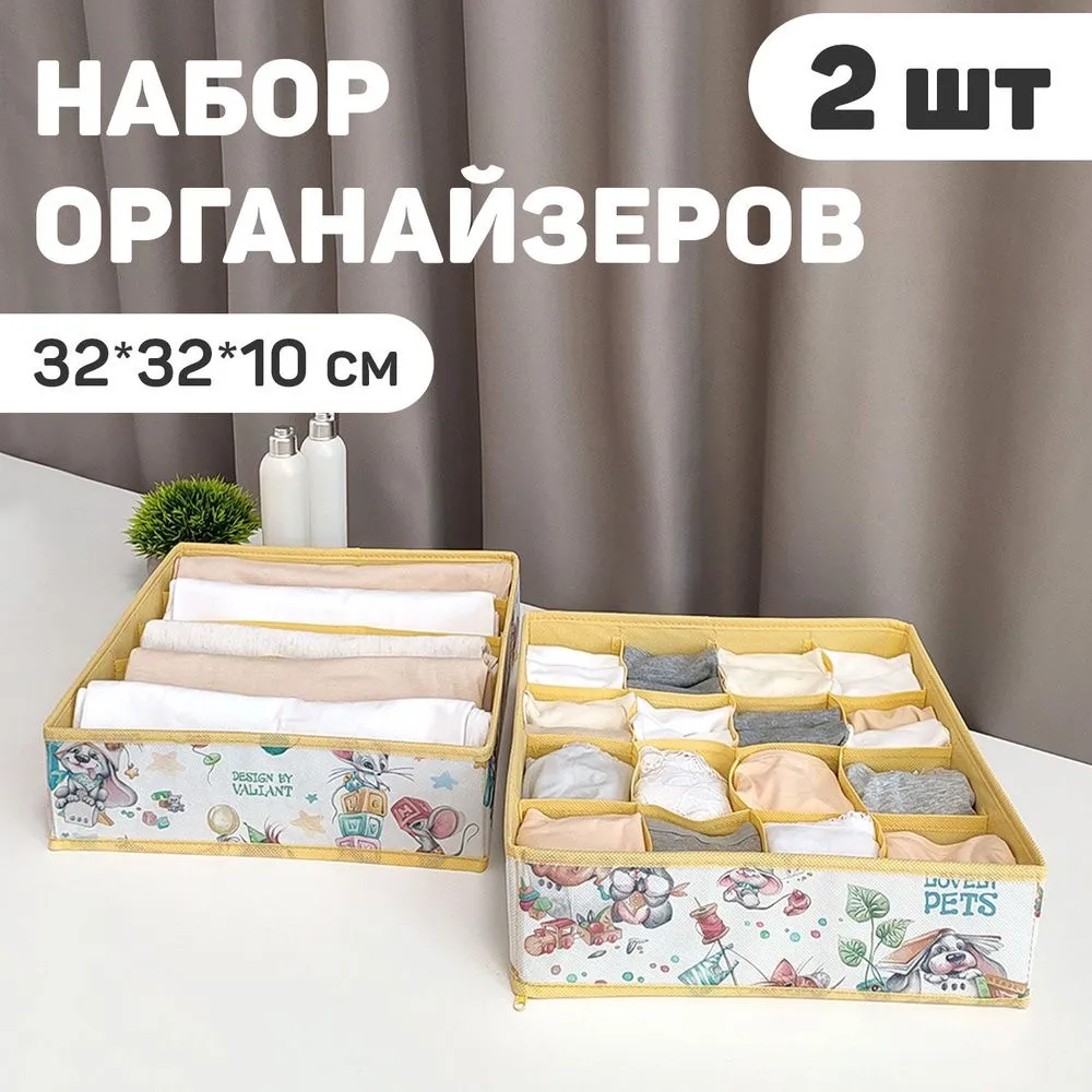 VAL LPY-S16S5 Набор органайзеров для белья, 2 шт., без крышки, 32*32*10 см, жёлт., ЛЮБИМЧИКИ